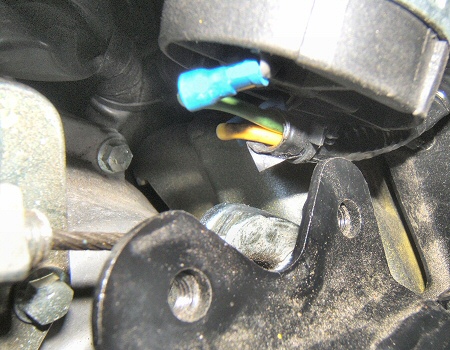 That setup worked pretty well until recently, when the horn stopped functioning. I discovered that the upper part of the tilt transmission's cable drive had been rubbing against one of the electrical spade connectors, eventually knocking it off its corresponding tang on the Stebel. I bent the tangs and connectors to increase clearance (Figure 4, top center). At this point I decided that mounting the horn with only one bracket allowed too much free play, which could cause the horn to come into contact with another part, such as the instrument cluster, or perhaps result in metal fatigue in the upper bracket.